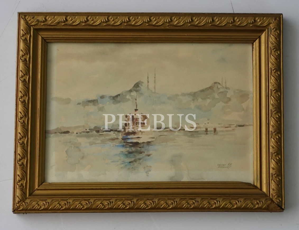 Ressam Oktay Bozkurt imzalı kağıt üzerine suluboya tablo, 30x40 cm