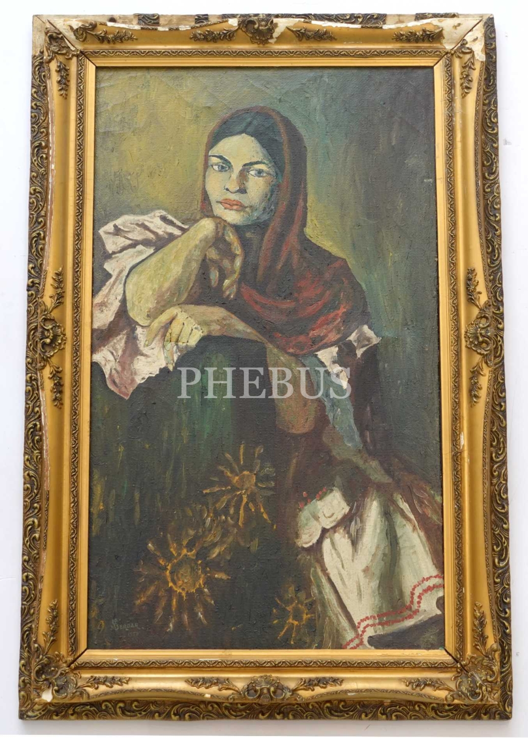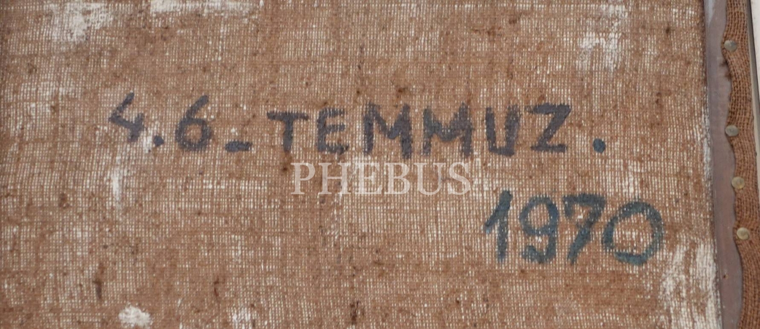 Ressam Mustafa Serdar imzalı, tuval üzerine yağlı boya portre, 1970 tarihli, 72x116 cm
