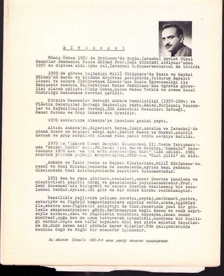 Ressam Münip Özben Desen Albümü, 3 sayfa, 23x30 cm