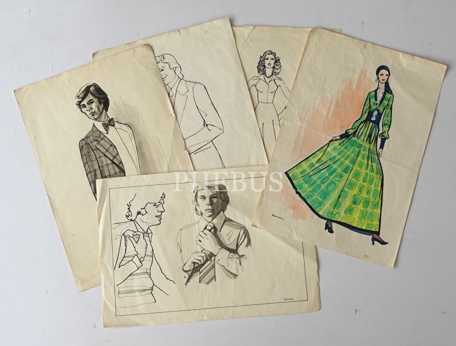 Kağıt üzerine kadın-erkek figür çizimi, imzalı, 5 adet