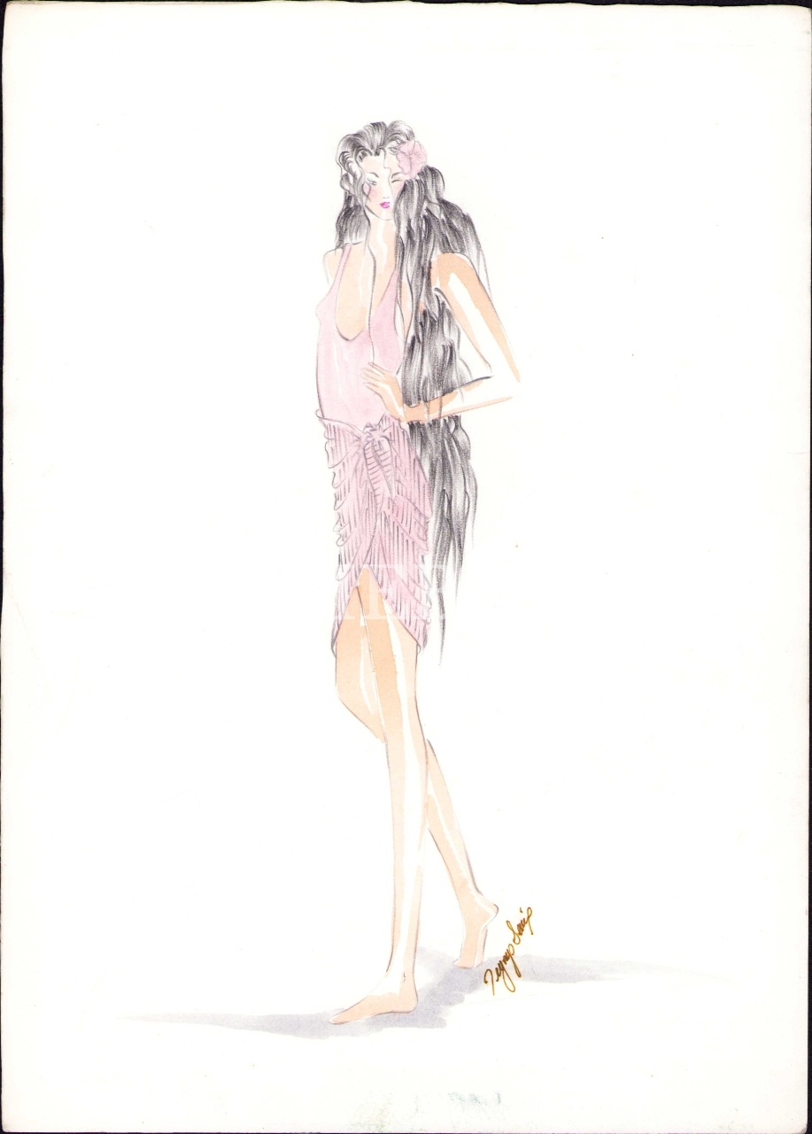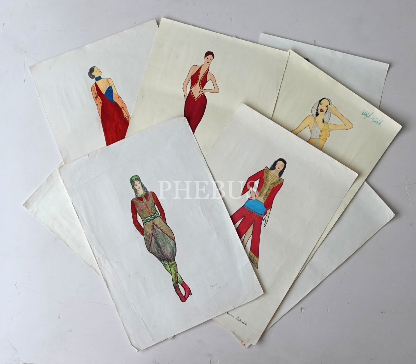 Kağıt üzerine kıyafet çizimleri, 14 adet
