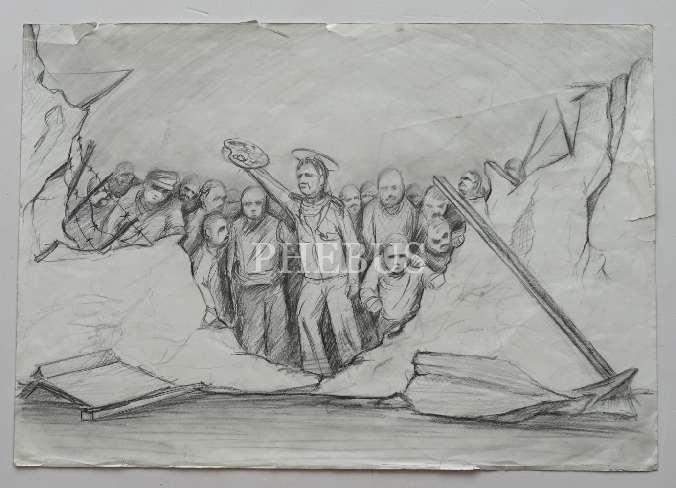 Kağıt üzerine karakalem çizim, 35x50 cm