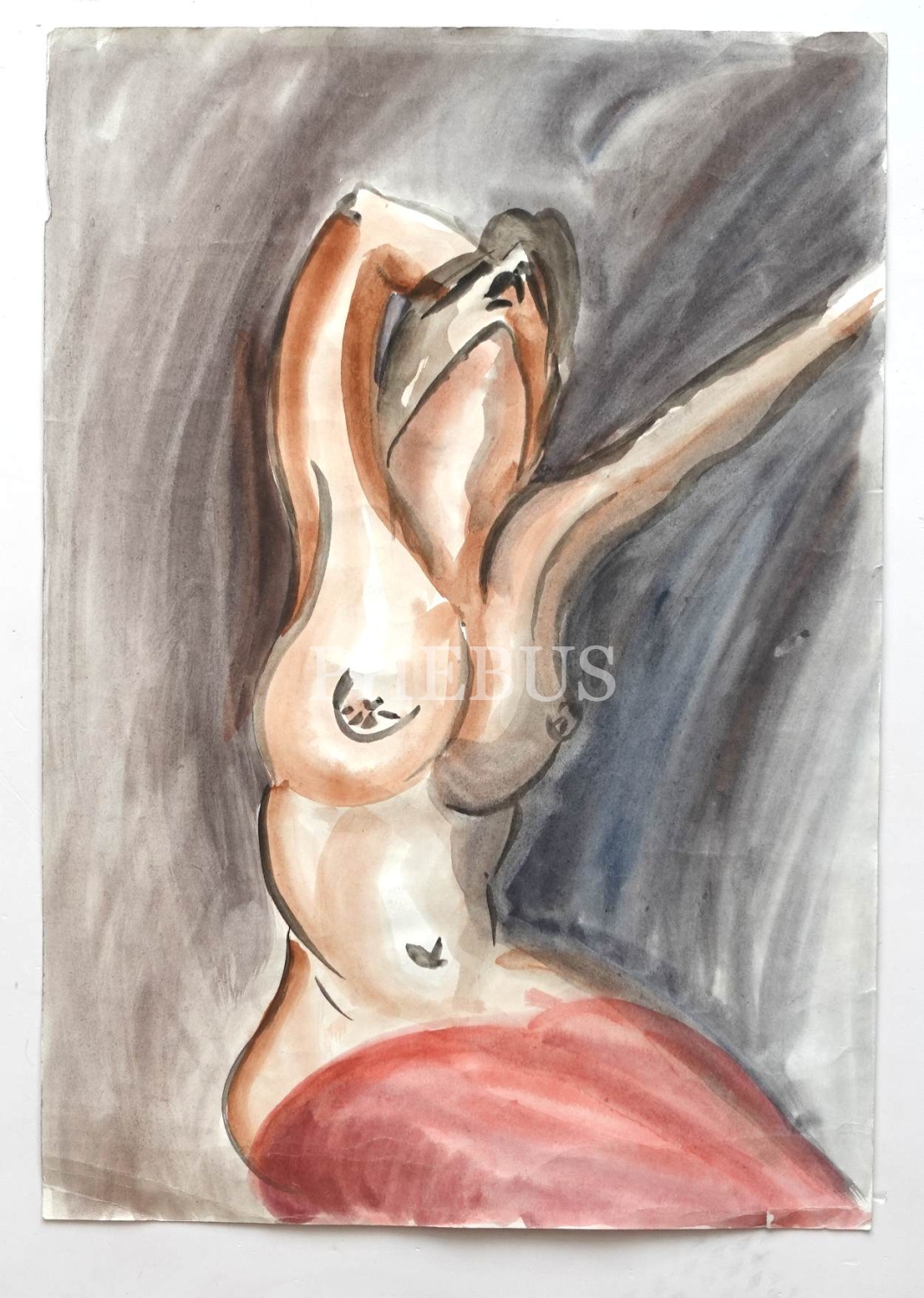 Kağıt üzerine sulu boya kadın figürü çizim, 35x50 cm