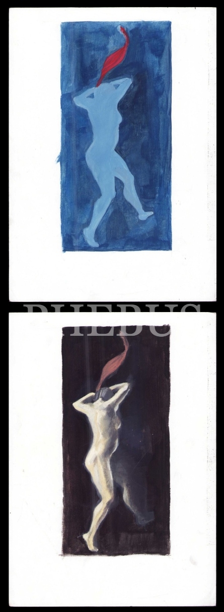 Kağıt üzerine guaj boya çizim, 2 adet, 20x29 cm