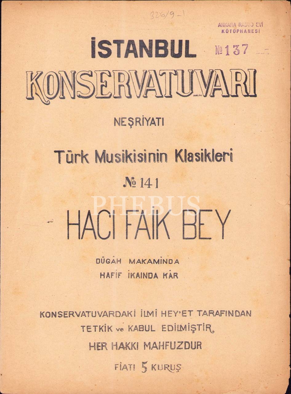 İstanbul Konservatuvarı Neşriyatı'ndan Türk Musikisinin Klasikleri: Hatipzade Osman Efendi'ye ait Rast faslında Kârı Natık ile Hacı Faik Bey'e ait Dügâh makamında hafif ikaında kâr, 25x34 cm