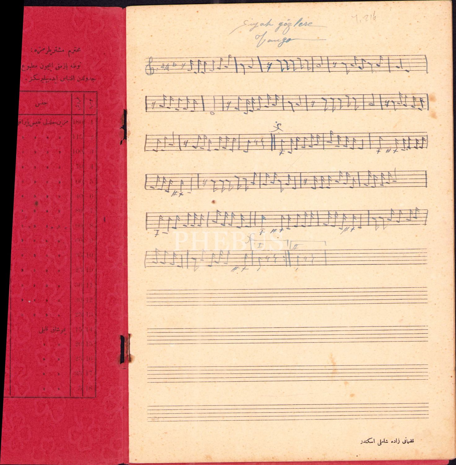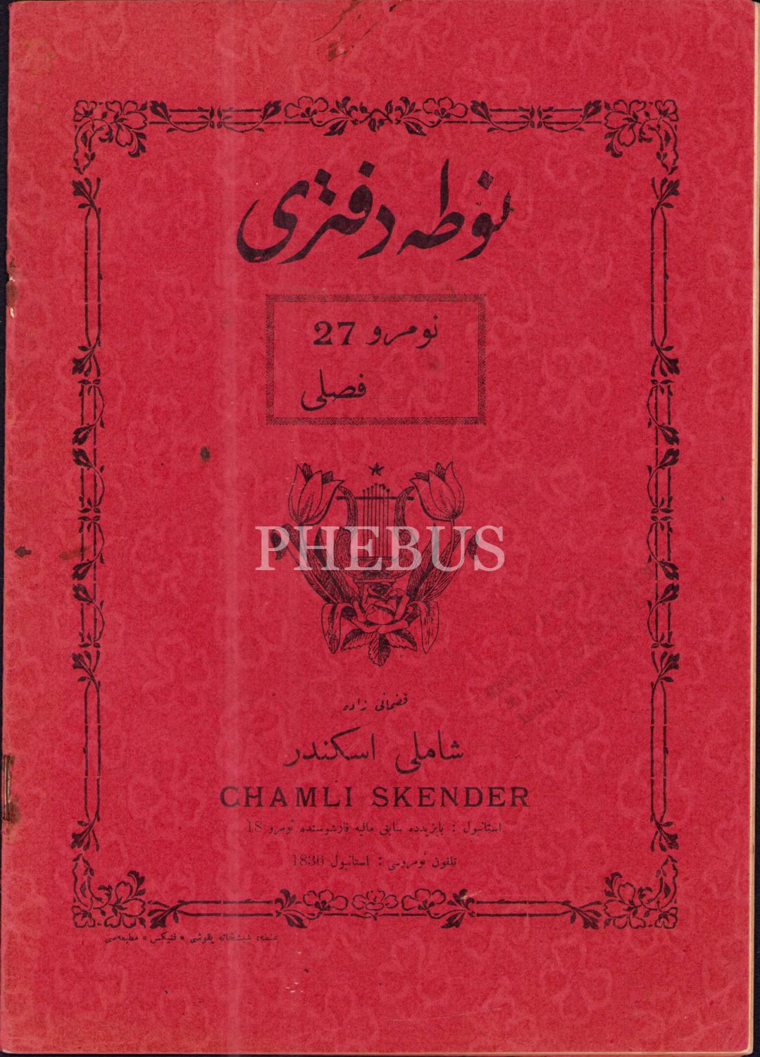 Kudmanizade Şamlı İskender yayınlarından şahsi nota defteri, Yıldız Musiki Âletleri İmalâthanesi damgalı, 20x28 cm, kapağı ayrık haliyle