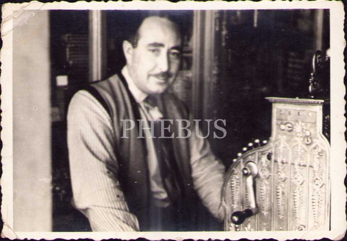 Makine başında poz veren beyefendi, 7x10 cm, üst köşesi kırık haliyle