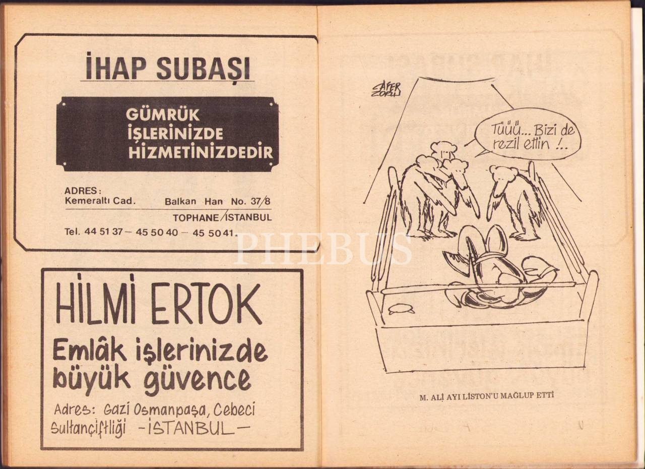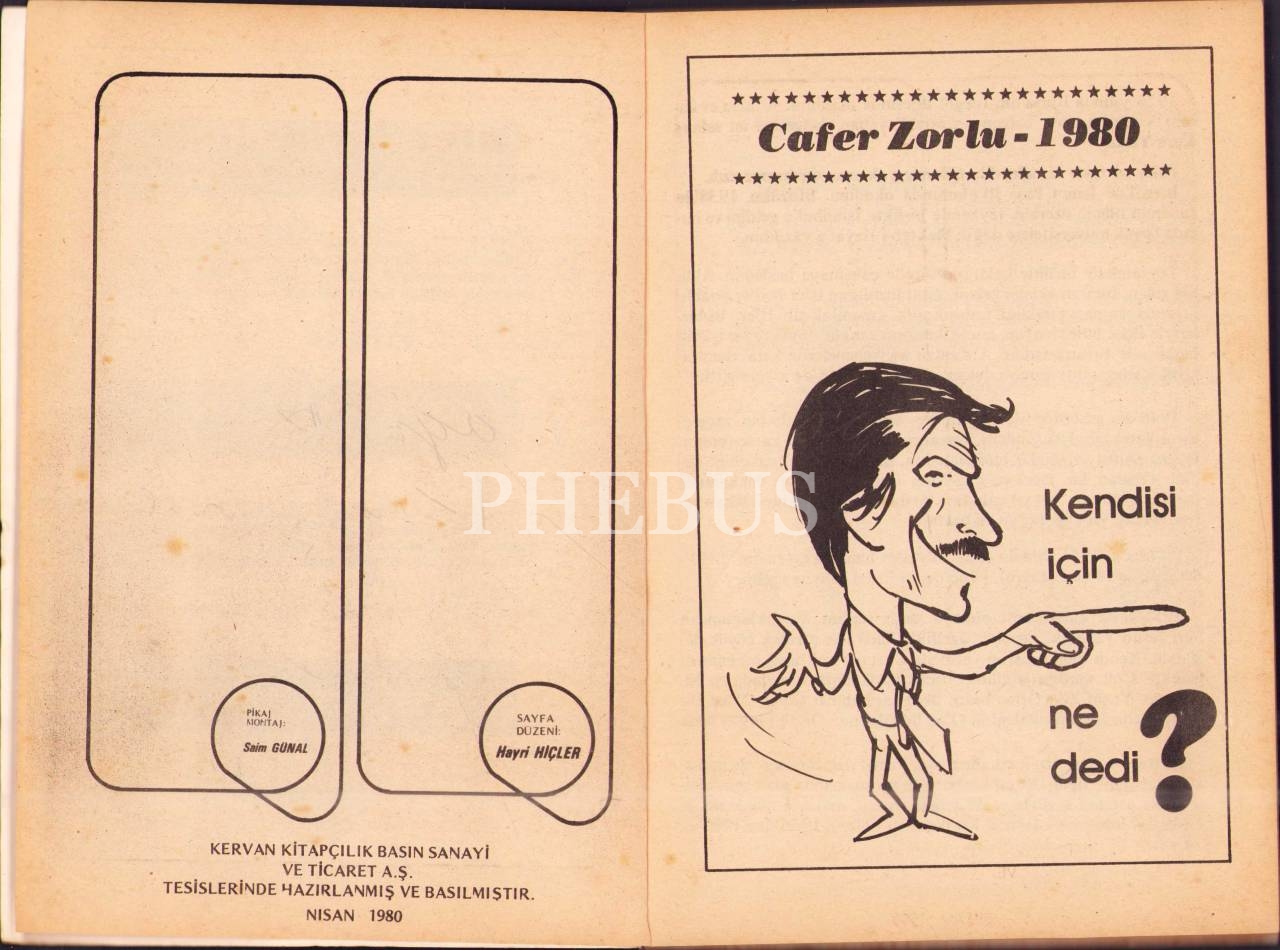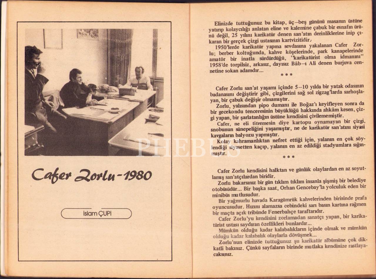 Karikatürist Cafer Zorlu'nun (1926 - 2012) çeşitli dergi ve gazetelere çizdiği spor karikatürleri… Karikatürist Ragıp Derin'e imzalı… Kitapta karikatürlerin yanı sıra, çok sayıda reklam da yer alıyor.