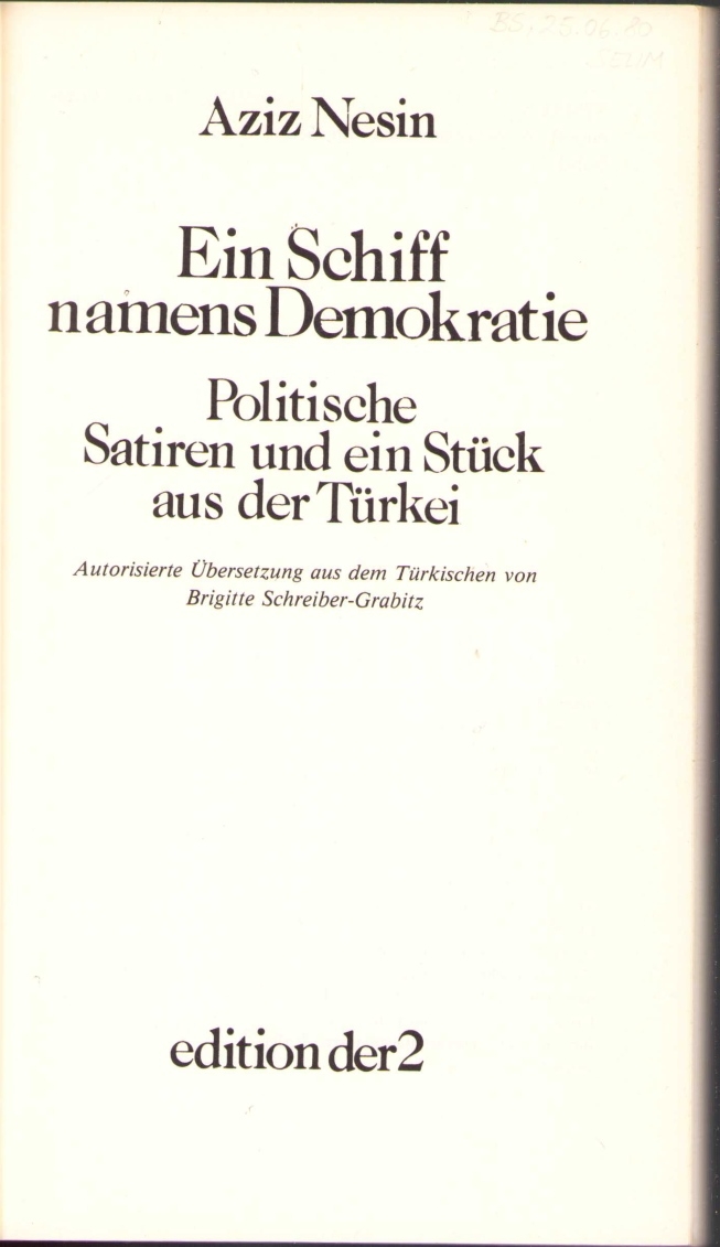 EİN SCHİFF NAMENS DEMOKRATİE [Almanca], 1978