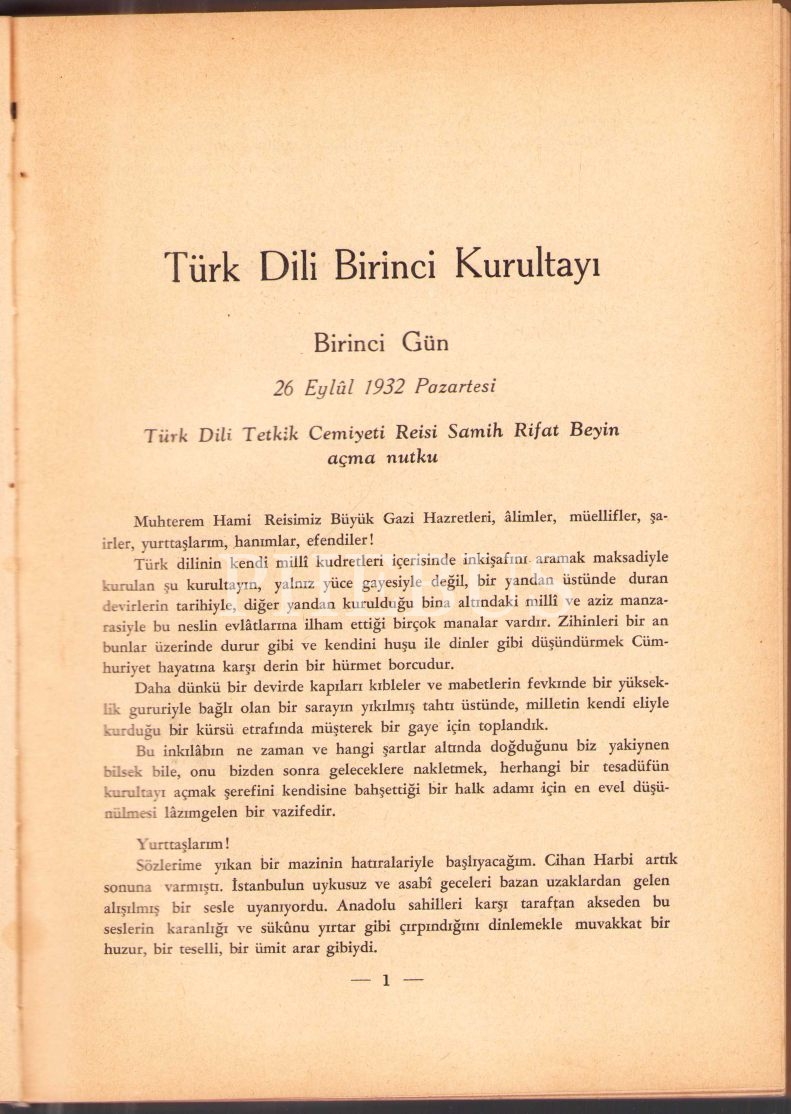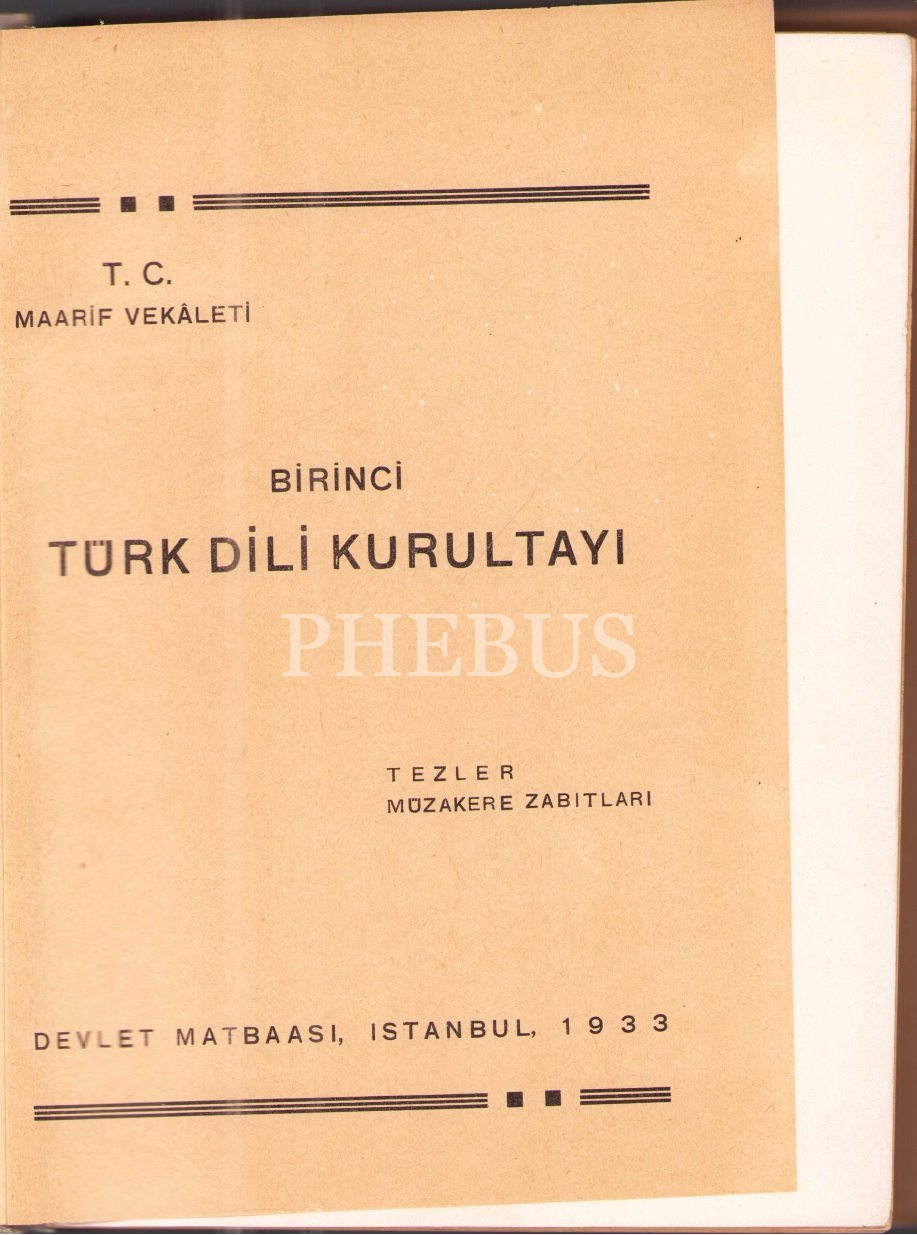 BİRİNCİ TÜRK DİLİ KURULTAYI TEZLER-MÜZAKERE ZABITLARI, 1933