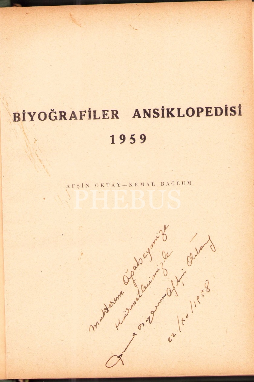 Afşin Oktay ve Kemal Bağlum'dan ithaflı ve imzalı, BİYOGRAFİLER ANSİKLOPEDİSİ, 1959