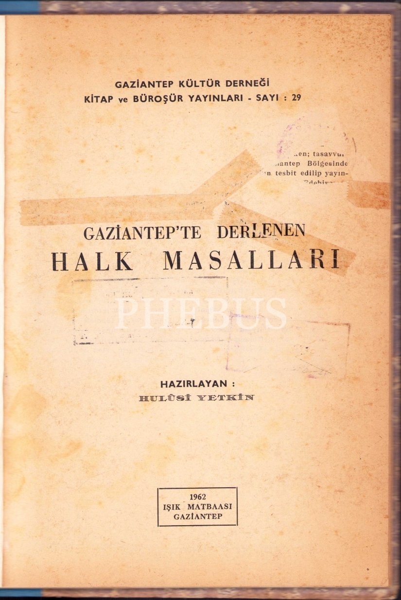 GAZİANTEP'TE DERLENEN HALK MASALLARI, haz. Hulusi Yetkin, 1962