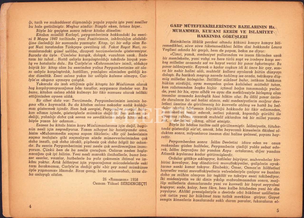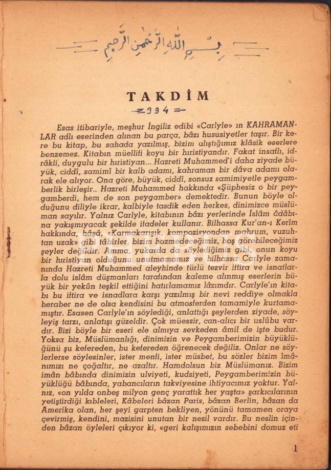 PEYGAMBER KAHRAMAN MUHAMMED, Carlyle, 1958