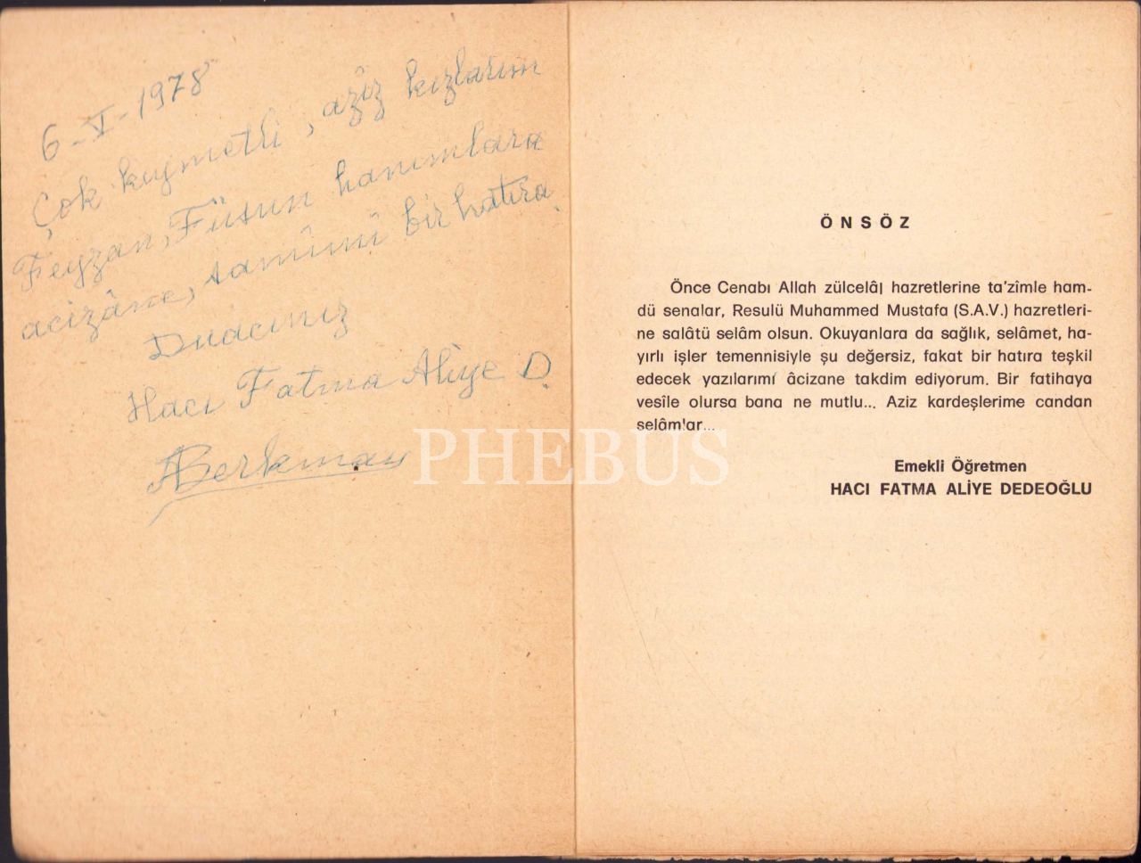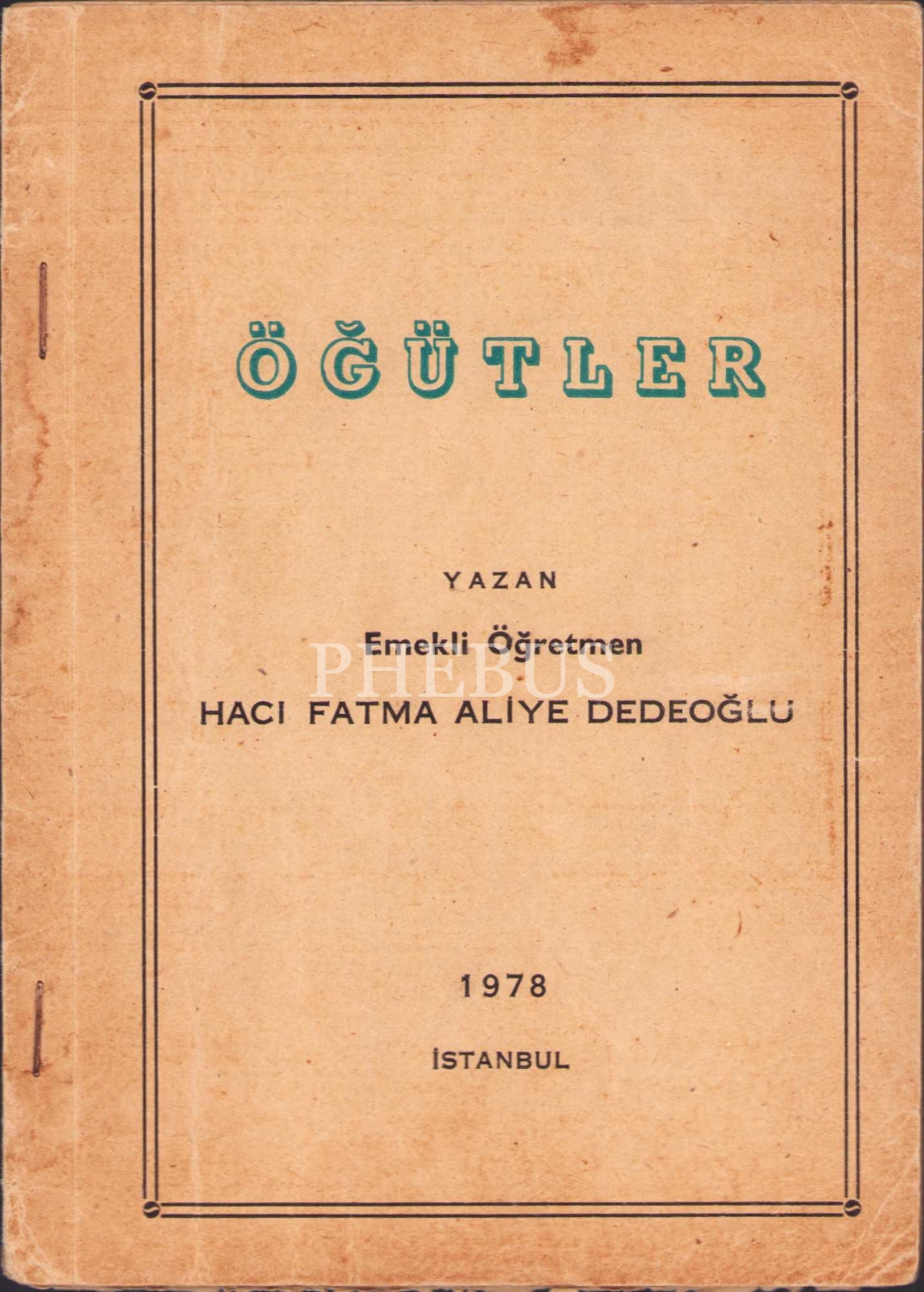 ÖĞÜTLER, Emekli Öğretmen Hacı Fatma Aliye Dedeoğlu, ithaflı ve imzalı, 1978