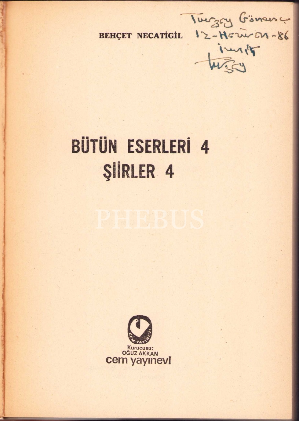 YAYIMLANMAMIŞ ŞİİRLER, Behçet Necatigil, haz. Ali Tanyeri- Hilmi Yavuz, 1985