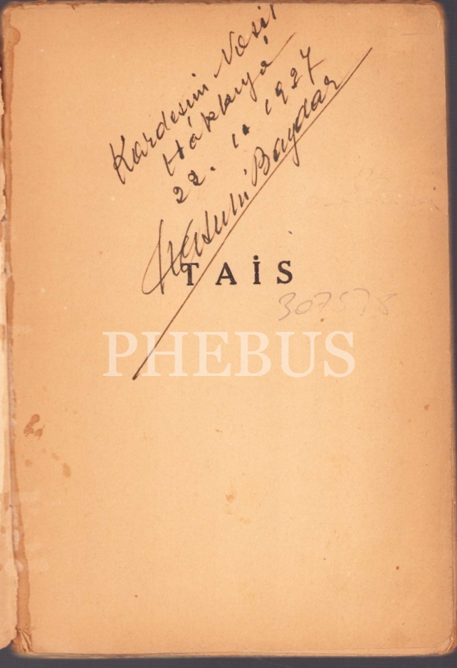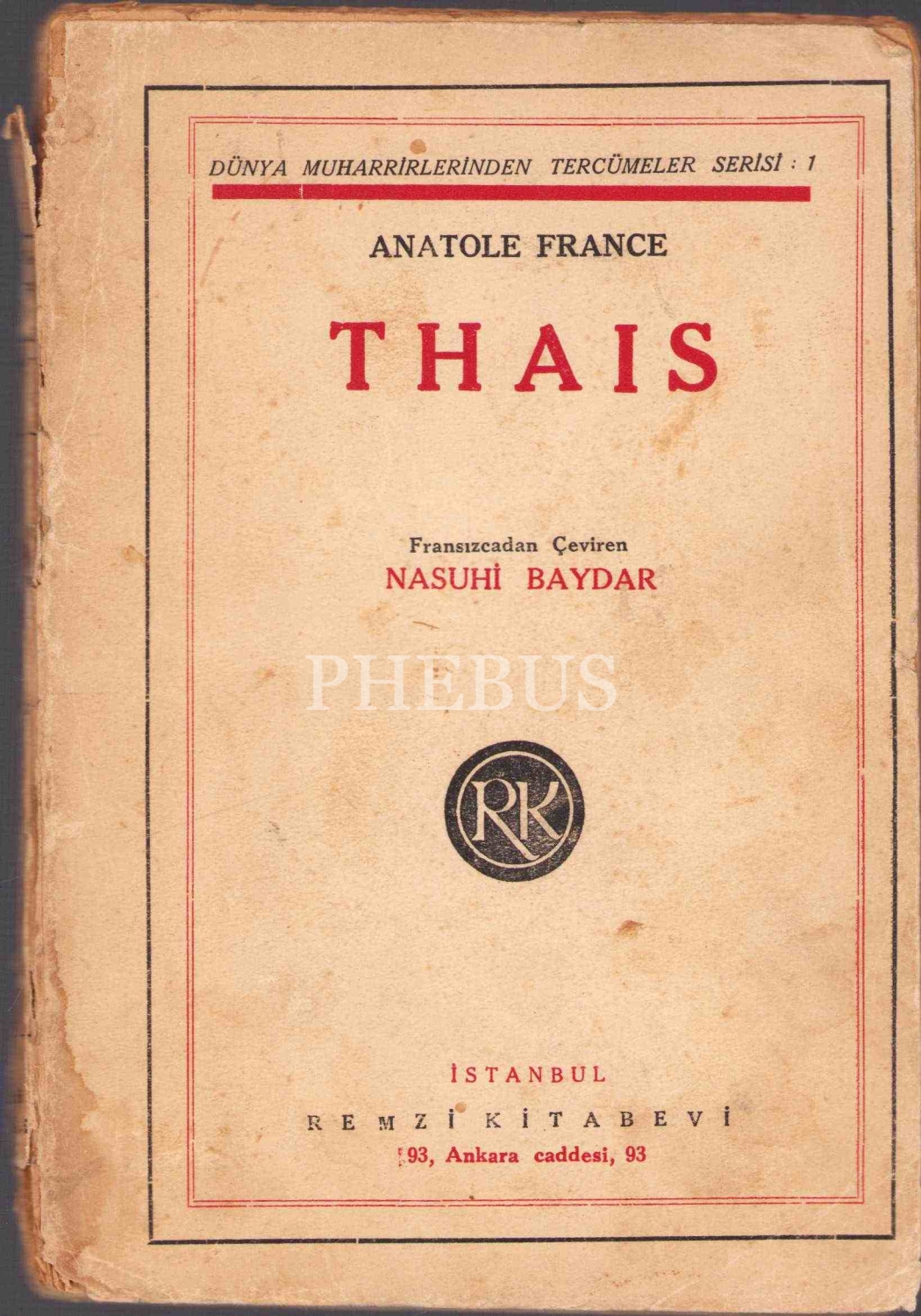THAIS, Anatole France, çev. Nasuhi Baydar'dan ithaflı ve imzalı, 1937, sırttan ayrık haliyle