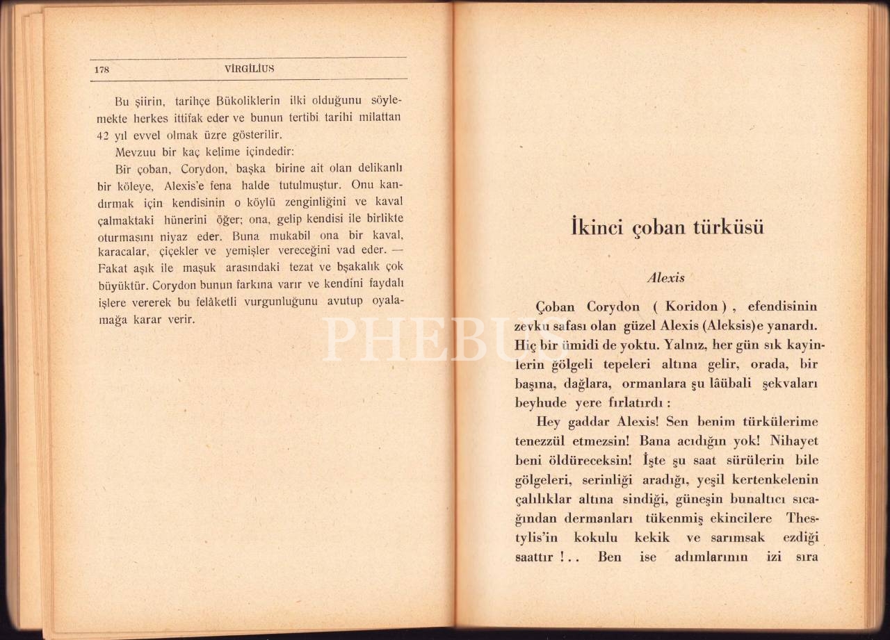 ÇOBAN ŞİİRLERİ "BÜKOLİKLER", Virgilius, çev. Ruşen Eşref, 1929