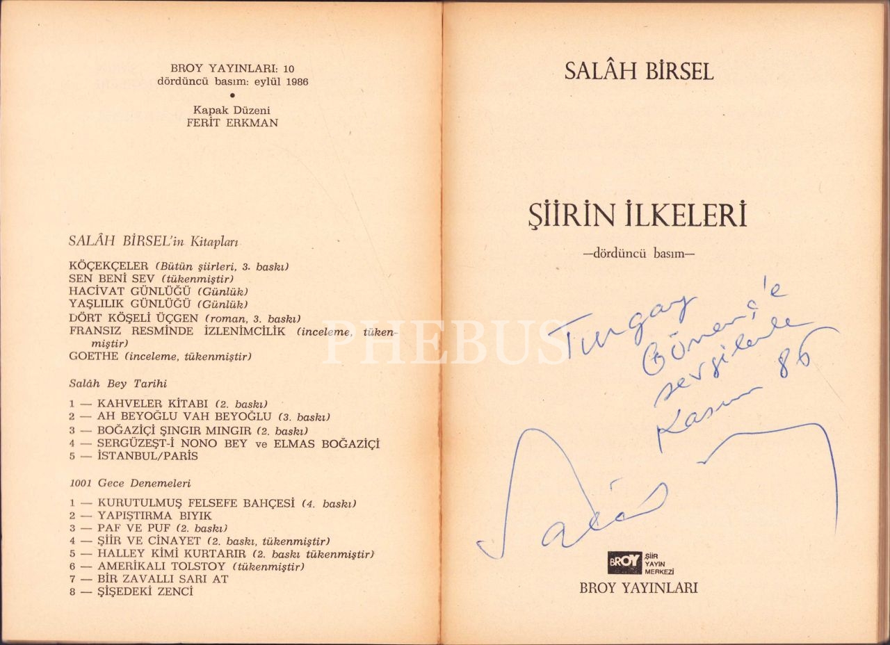 Salâh Birsel'den ithaflı ve imzalı ŞİİRİN İLKELERİ, 1986