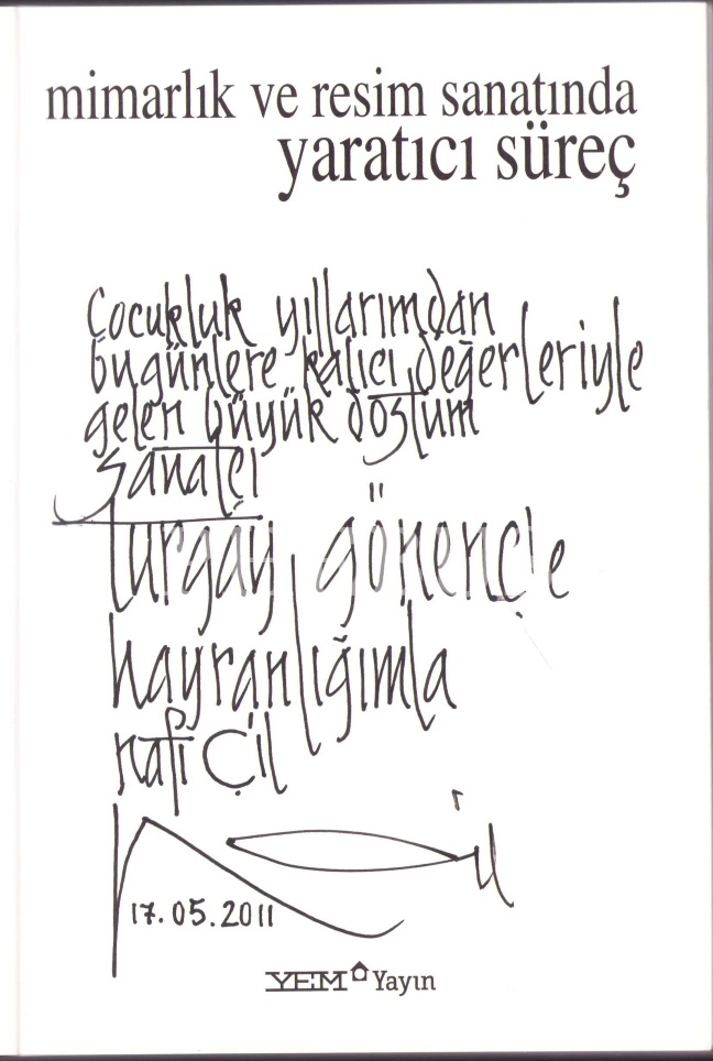 Nafi Çil'den ithaflı ve imzalı MİMARLIK VE RESİM SANATINDA YARATICI SÜREÇ, 2011