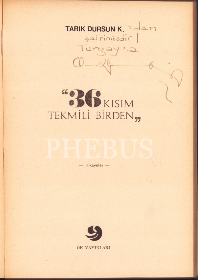 Tarık Dursun K.'dan ithaflı ve imzalı 36 KISIM TEKMİLİ BİRDEN, 1970