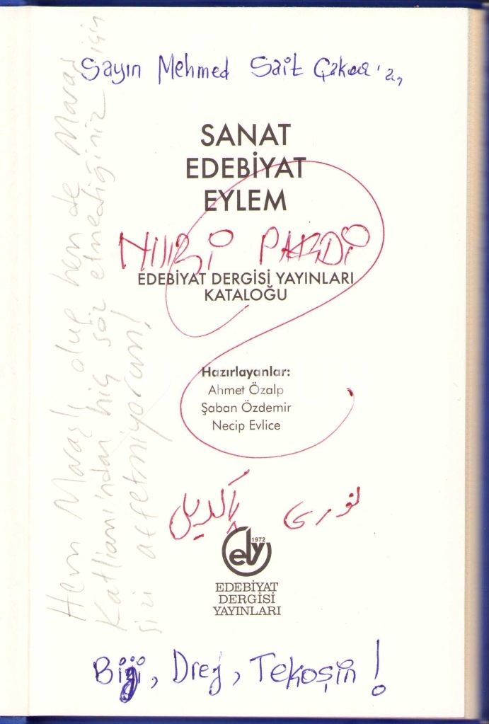 SANAT EDEBİYAT EYLEM, Edebiyat Dergisi Yayınları Kataloğu, Nuri Pakdil'den ithaflı ve imzalı, 2014