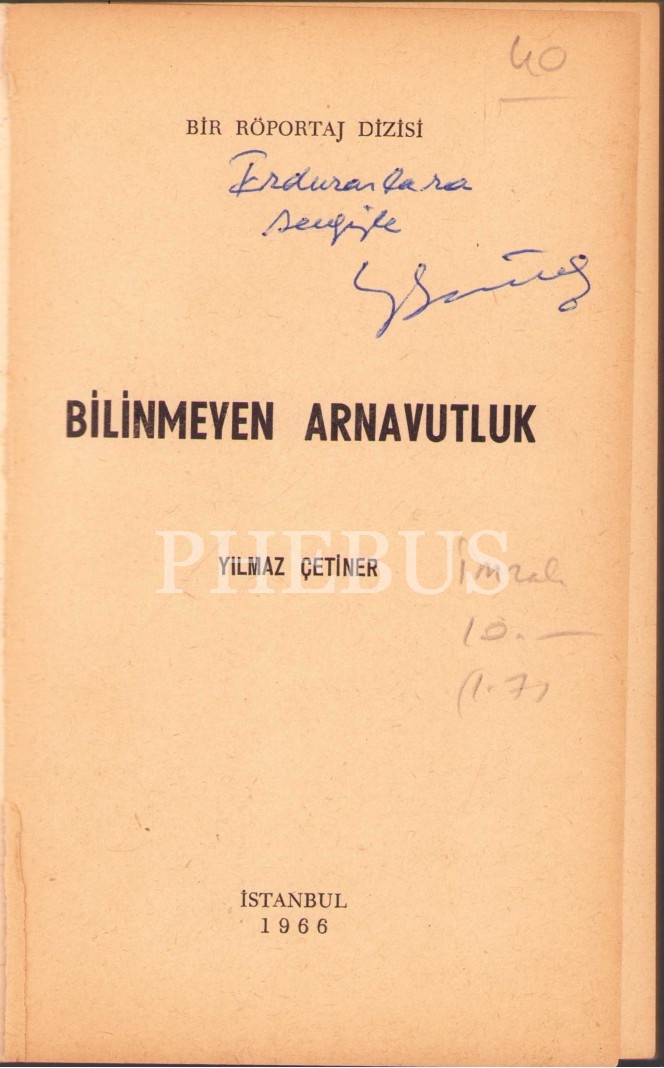 Yılmaz Çetiner'den ithaflı ve imzalı BİLİNMEYEN ARNAVUTLUK, 1966