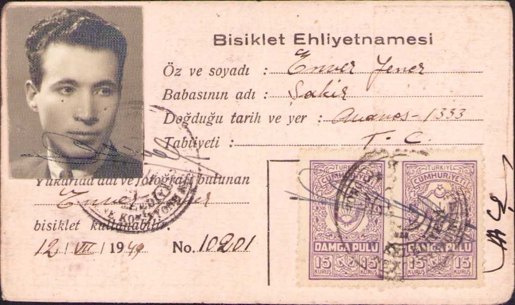 1949 tarihli bisiklet ehliyetnamesi, 8x11cm
