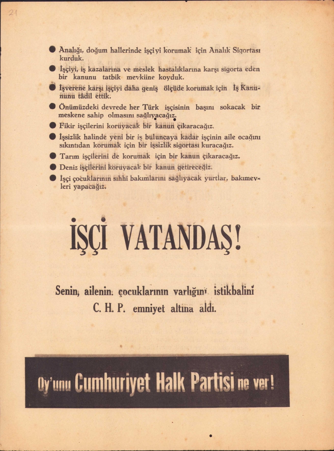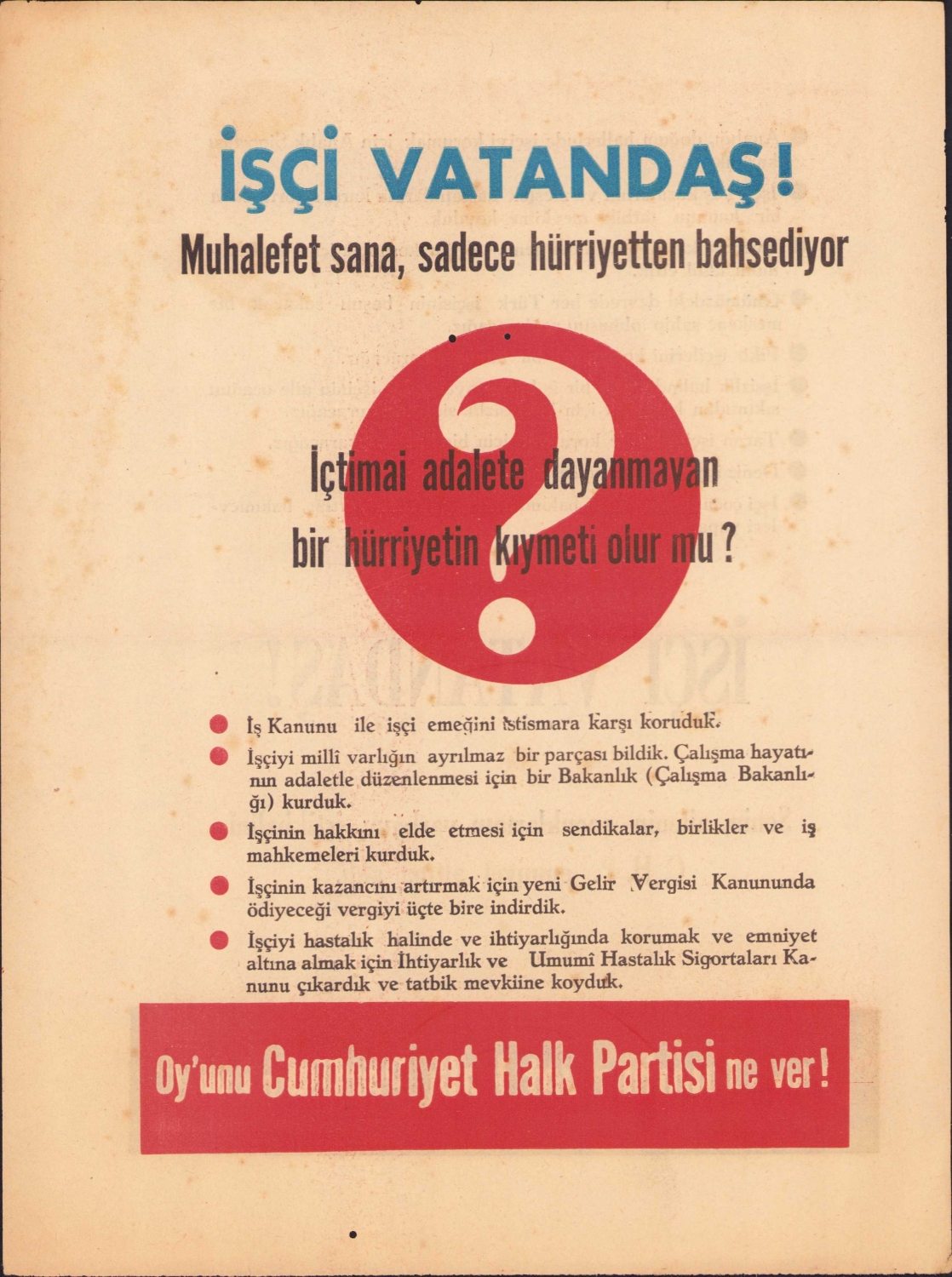 Cumhuriyet Halk Partisi propaganda afiş, 22x30cm