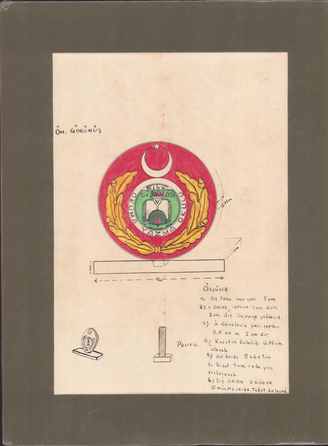 Sivas Okuma Yazma Okulu madalyonun çizim hali, 29x38cm