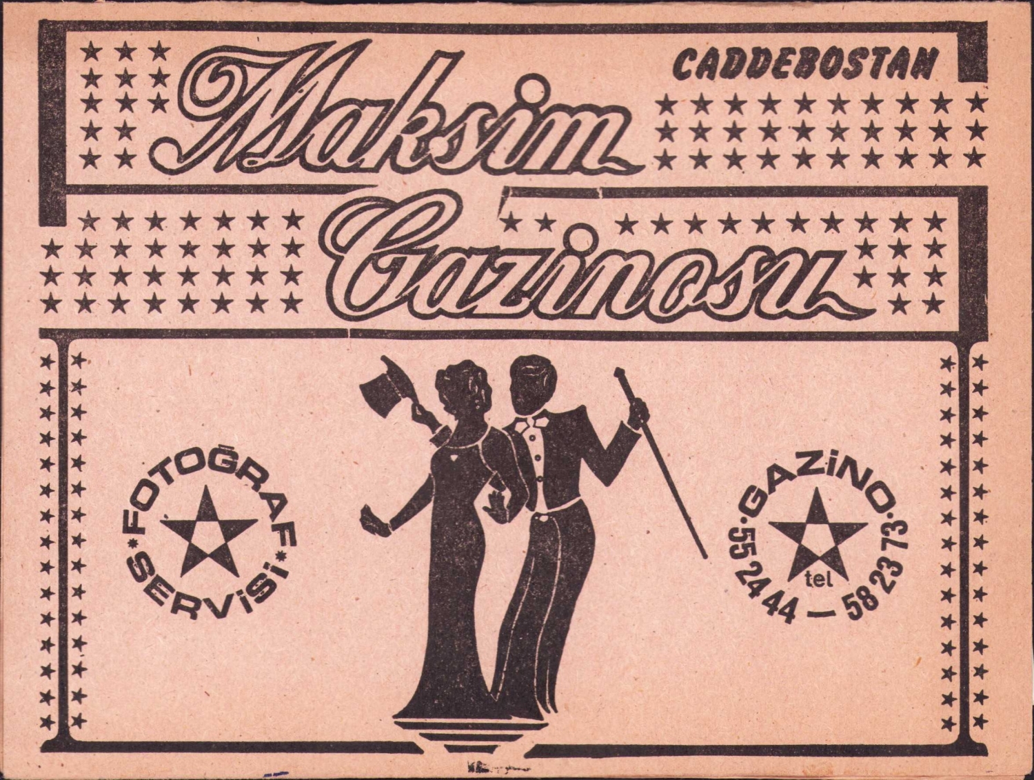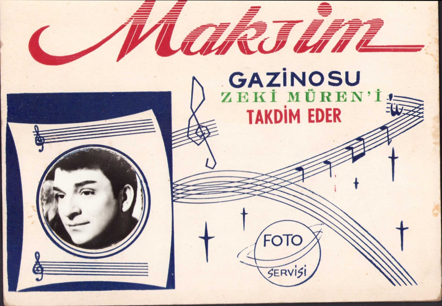 Maksim Gazinosu 5 adet fotoğraf kabı, birinin üzerinde orijinal Zeki Müren fotoğrafı var, 20x15cm