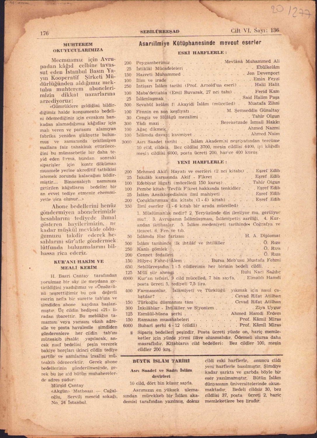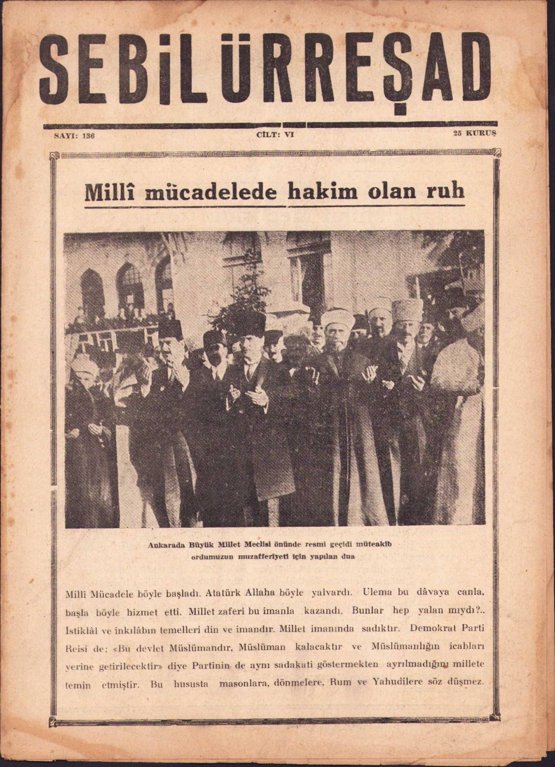 Atatürk kapaklı Sebilürreşad dergisi, 21x29cm