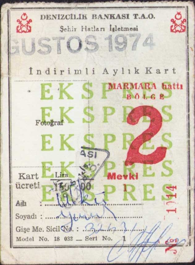 Denizyolları kimlik kartı, 1974 tarihli, 8x11cm