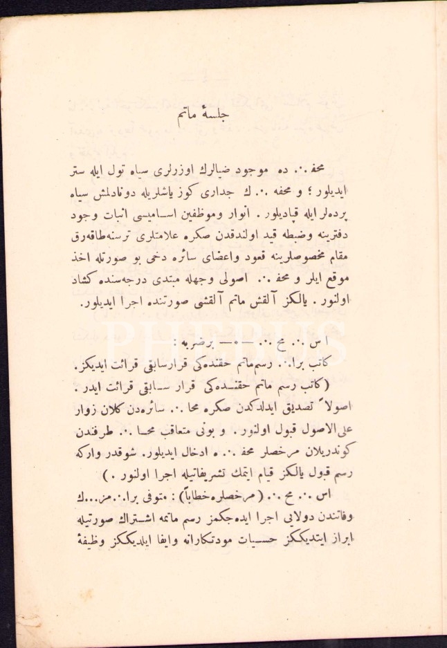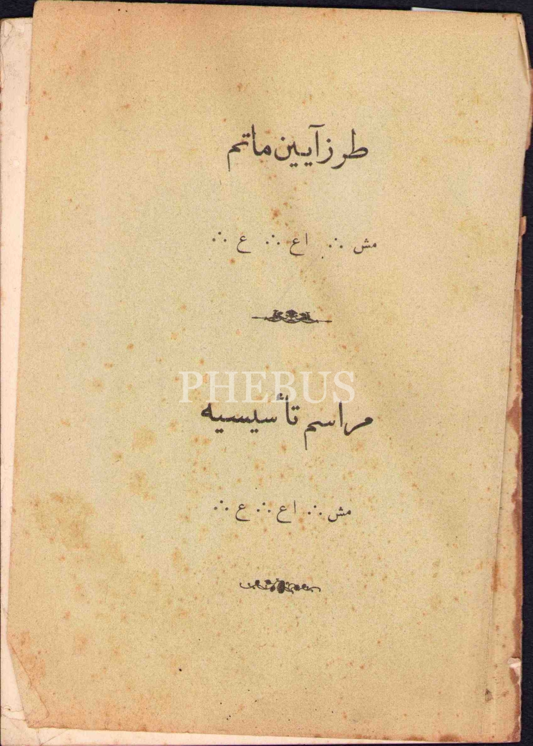 TARZ-I ÂYÎN-İ MÂTEM [YAS AYİNİ USULÜ] ve MERÂSİM-İ TE'SÎSİYYE [KURULUŞ TÖRENLERİ], 28 s., 14x20 cm, kapak sayfası kısmen yarık haliyle