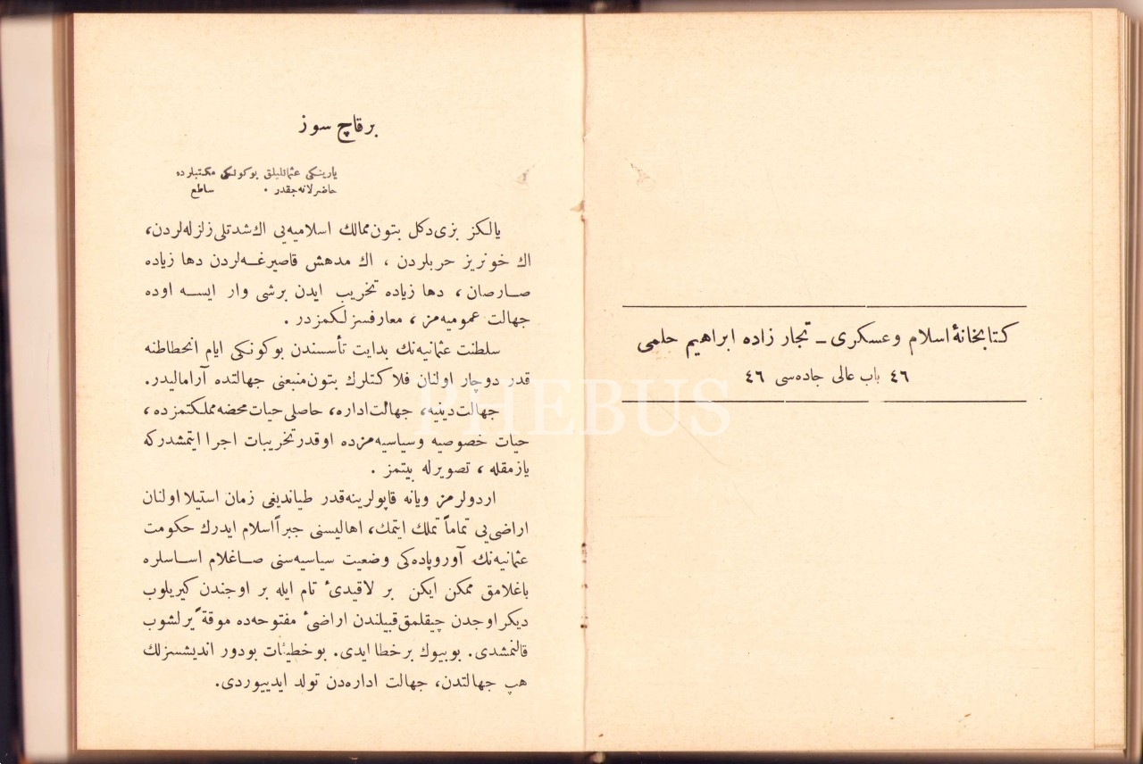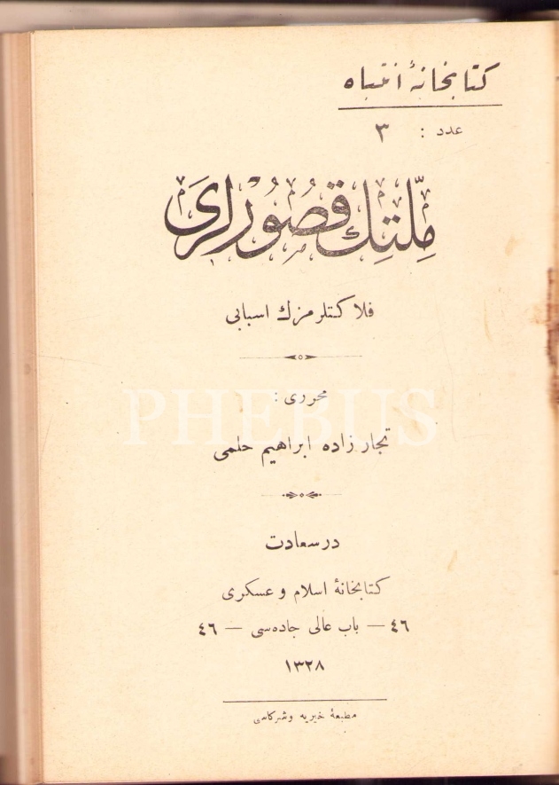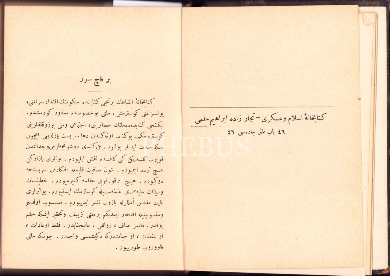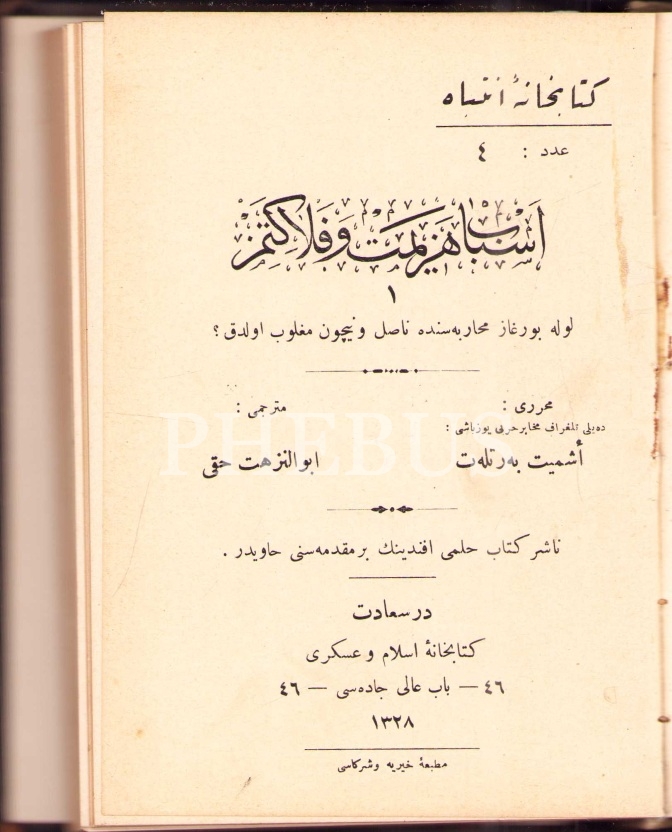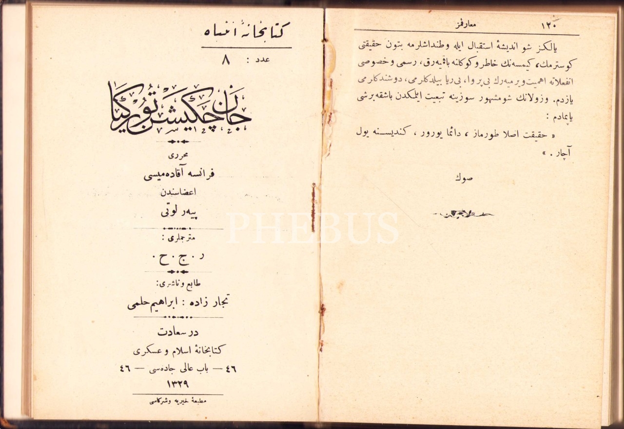 ESBÂB-I HEZÎMET VE FELÂKETİMİZ, Ashmead Bartlett, çev. Ebunnüzhet Hakkı, CAN ÇEKİŞEN TÜRKİYE, Pierre Loti, çevirmenler: R. C. H., Matbaa-i Hayriye ve Şürekası, Dersaadet [İstanbul] 1328-29, 12x17 cm, iç sırtı ayrık haliyle