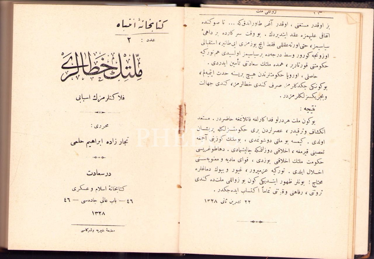 6 eser tek ciltte: Tüccarzâde İbrahim Hilmi'ye ait Felâketlerimizin Esbâbı serisinden: ZAVALLI MİLLET, MİLLETİN HATÂLARI, MİLLETİN KUSÛRLARI, MAÂRİFİMİZ VE SERVET-İ İLMİYYEMİZ;