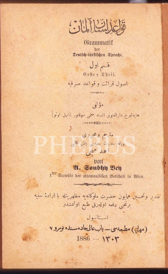 KAVÂİD-İ LİSÂN-I ALMAN (1. Kısım), Emil Otto, çev. Ahmed Subhi, Mihran Matbaası, İstanbul 1886, 383 s., 14x19 cm