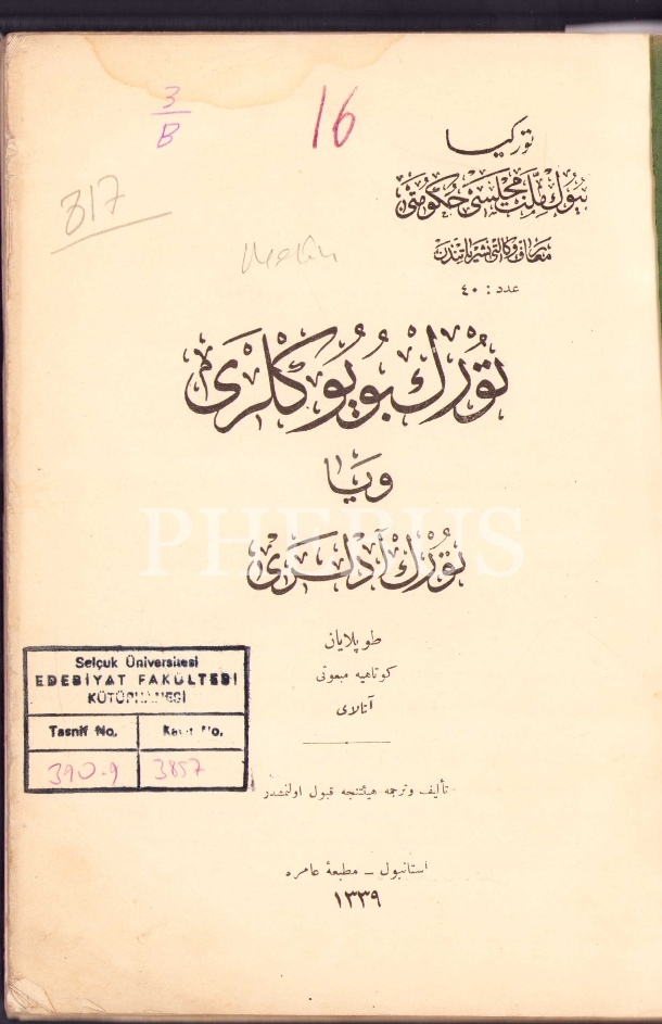 TÜRK BÜYÜKLERİ VEYA TÜRK ADLARI, toplayan: Kütahya Mebusu Atalay, Amire Matbaası, İstanbul 1339, 112 s., 17x25 cm