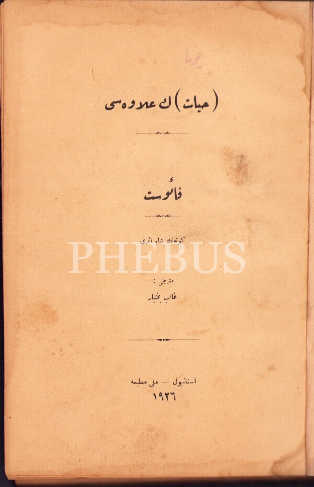 HAYAT'ın İlâvesi Olarak FAUST, Goethe, çev. Galib Bahtiyar, Milli Matbaa, İstanbul 1926, 208 s., 17x25 cm, son sayfası ayrık haliyle