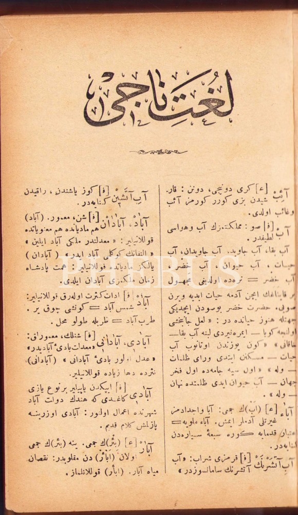 Ay yıldızlı ve tuğralı cildinde LÜGAT-İ NÂCÎ, Muallim Naci, Asr Matbaası, İstanbul 1323, 486+2 s., 13x20 cm
