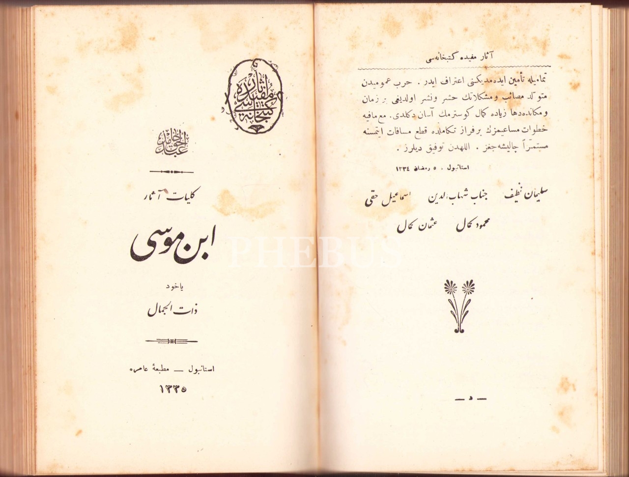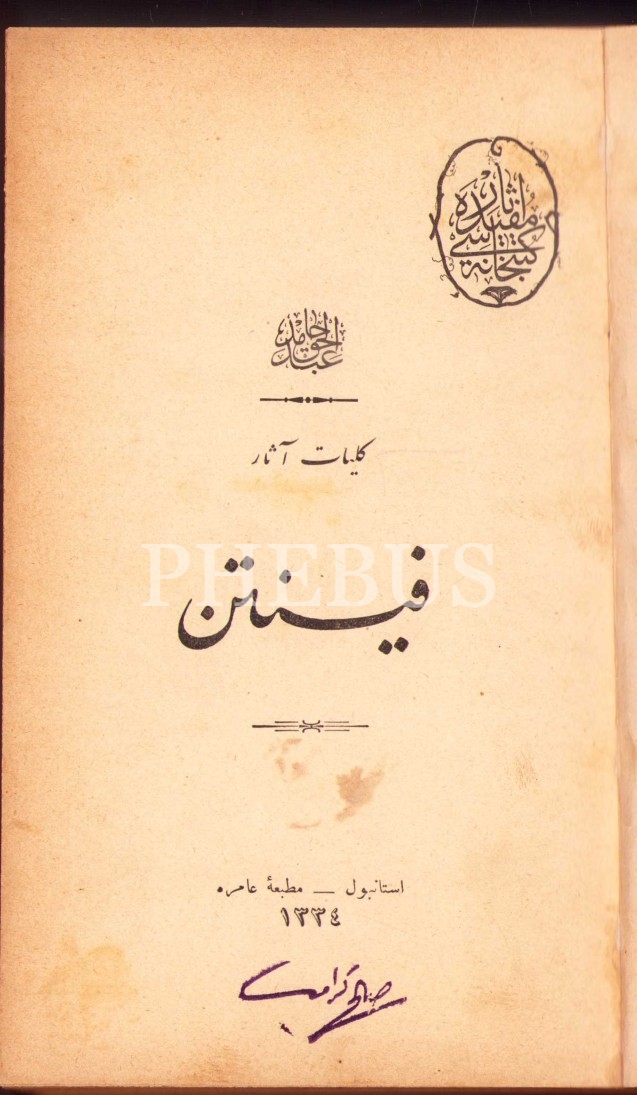 Abdülhak Hamid [Tarhan]'a ait 2 eser tek ciltte: FİNTEN ve İBN MÛSÂ YÂHÛD ZÂTÜ'L-CEMÂL, Amire Matbaası, İstanbul 1334-35, 496+418 S., 13x20 cm