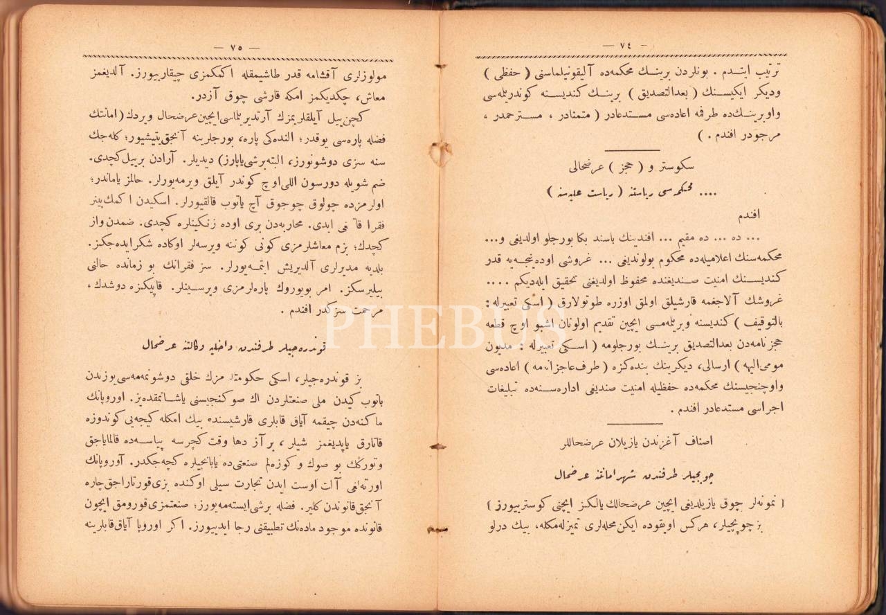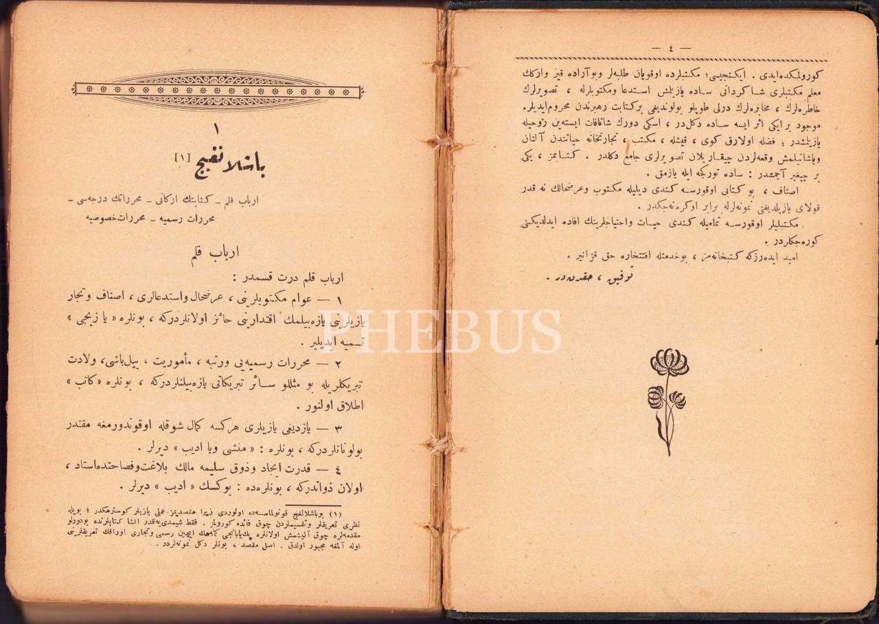 "Artık eski rütbeler kalmadı. Bin bir dürlü Arabî ve Farsî terkiblerle yazılan arzuhâl ve mektub suretleri ibtal oldu. Bundan böyle açık ve sade yazılacakdır. Şimdiye kadar anadiliyle bir tek mektub, bir tek arzuhâl yazmayanlar! Bu kitabda pek sade numuneler bulacaksınız.. Türk Oğulları! Artık konuşduğunuz gibi yazınız ve öyle yazanları seviniz."