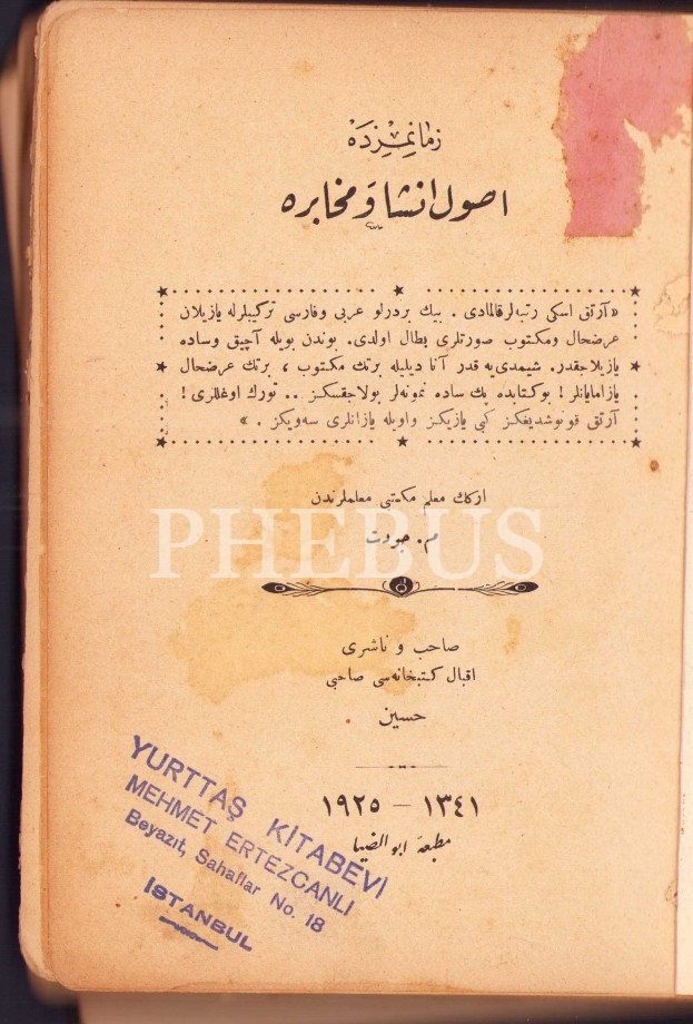ZAMANIMIZDA USÛL-İ İNŞÂ VE MUHÂBERE, M. Cevdet, Ebuzziya Matbaası, 1925, 358 s., 14x19 cm, sırtı ve bazı sayfaları ayrık haliyle