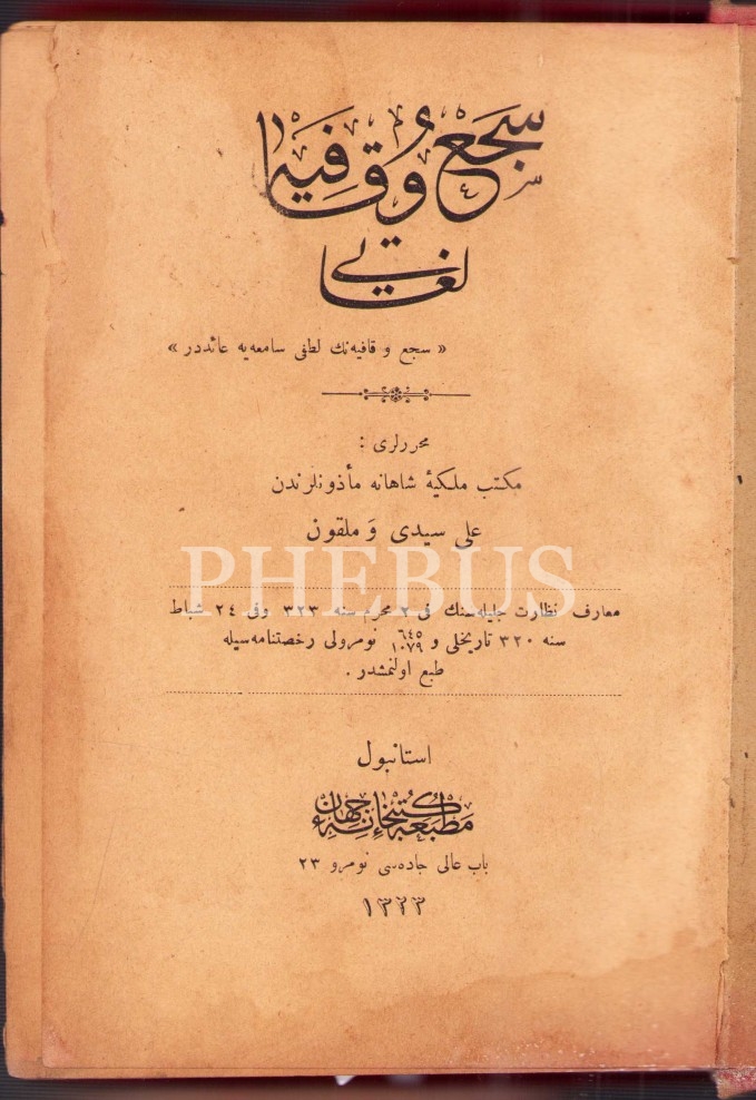SECİ' VE KÂFİYE LÜGÂTİ, Ali Seydi ve Malkon, Cihan Kütübhanesi Matbaası, İstanbul 1323, 863 s., 13x19 cm, künye sayfası kısmen ayrık haliyle