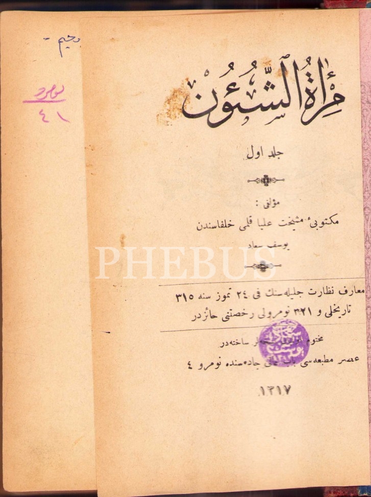 MİR'ÂTÜ'Ş-ŞÜÛN (1. Cild), Yusuf Suad, Asr Matbaası, İstanbul 1317, 536 s., 13x18 cm