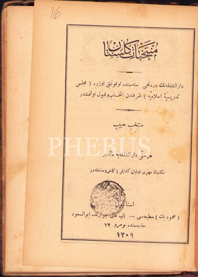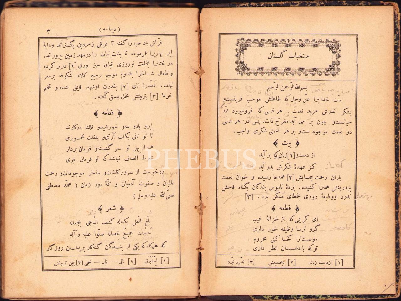 MÜNTEHABÂT-I GÜLİSTÂN (Müntehab-ı Habîb) [Seçki], Mahmud Bey Matbaası, İstanbul 1309, 140 s., 13x20 cm, cildi kısmen ayrık haliyle