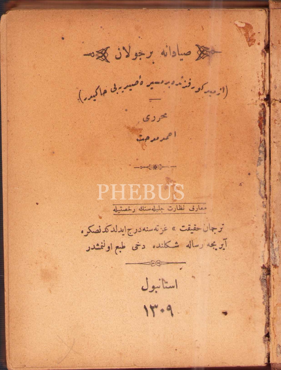 SAYYÂDÂNE BİR CEVELÂN, Ahmed Midhat, İstanbul 1309, 256 s., 10x14 cm, sırtı kısmen ayrık haliyle