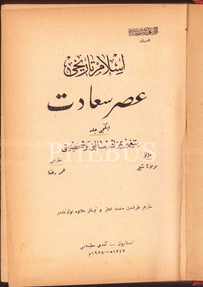 1. cilt: Peygamberimizin Sîreti, Mevlana Şibli, çev. Ömer Rıza; 2. cilt: Peygamberimizin Risâleti ve Şahsiyeti, Mevlana Şibli, çev. Ömer Rıza; 3 ve 4. cilt: Peygamberimizin Rûhânî Hayâtı, Süleyman Nedvi, çev. Ömer Rıza; 5. cilt: Hz. Âişe, Süleyman Nedvi, çev. Ömer Rıza; 6. cilt: Hz. Ebûbekir, Ömer Rıza; 7. cilt: Hz. Ömer, Mevlana Şibli, çev. Ömer Rıza; 8 ve 9. cilt: Hz. Osmân ve Hz. Ali, Ömer Rıza