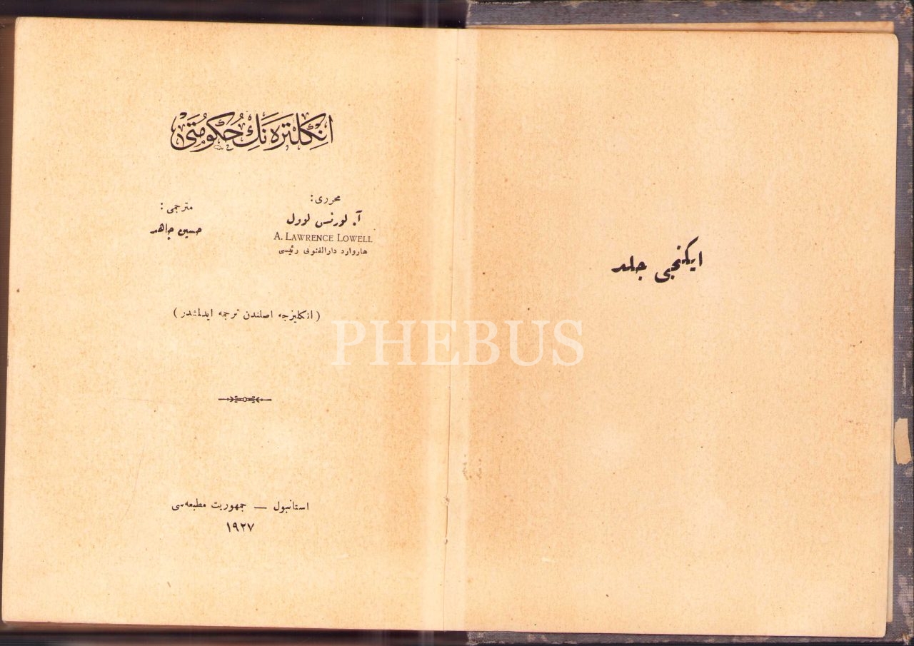 İNGİLTERE'NİN HÜKÜMETİ (2. Cilt), A. Lawrence Lowell, çev. Hüseyin Cahid [Yalçın], Cumhuriyet Matbaası, İstanbul 1927, 422 s., 15x20 cm
