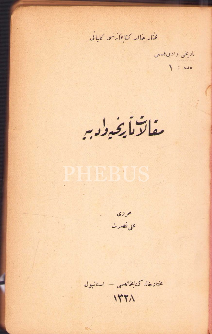 MAKÂLÂT-I TÂRÎHİYYE VE EDEBİYYE, Ali Nusret, Tanin Matbaası, İstanbul 1328, 192 s., 12x19 cm