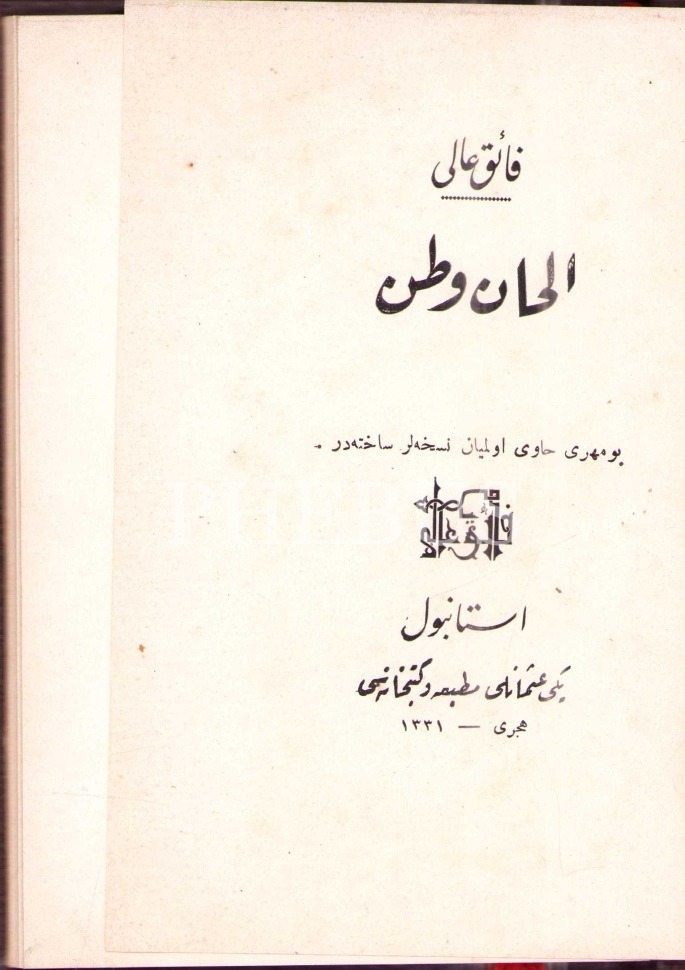 ELHÂN-I VATAN [Şiir], Faik Ali, Yeni Osmanlı Matbaa ve Kütübhanesi, İstanbul 1331, 71 s., 13x19 cm